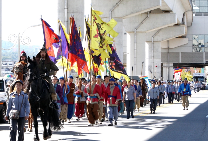 처인대첩 퍼레이드가 용인시를 가로지르고 있다.