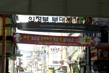 의정부 대표 별미 부대찌개 맛집은 의정부 경전철 중앙역 2번 출구부터 시작된다.