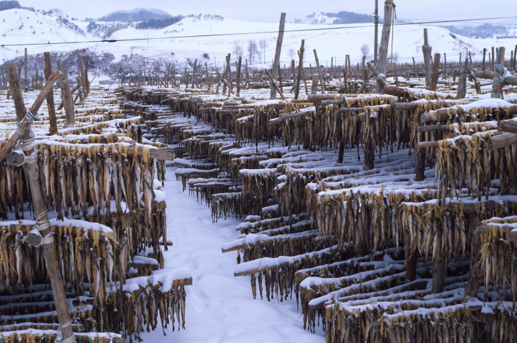 대관령의 구릉지대는 해마다 겨울이 되면 우리나라에서 제일가는 황태덕장으로 변신한다.