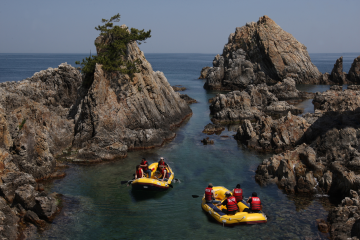 장호어촌체험마을 축제를 찾은 체험객들이 기암괴석 사이로 래프팅을 하고 있다.매년 7월 말에서 8월 초 개최되는 장호 어촌체험마을 축제는 가족, 친구, 연인 등 수많은 관광객들이 찾는 강원 지역의 대표 축제다. 바닷속을 훤히 들여다볼 수 있도록 설계된 투명카누 체험을 비롯하여 간단한 장비로 수중환경을 관찰하는 스노클링 체험, 깨끗한 바닷물과 기암절벽이 어우러진 곳에서 고동을 잡는 고동잡이 체험, 수산물 맨손잡기 체험, 스쿠버 다이빙 등 20여 개의 다채로운 행사가 마련되어, 여름철 피서객의 더위를 날려준다.
