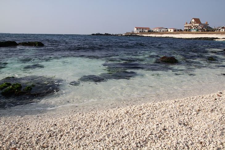 흰 백사장과 현무암의 조화가 아름다운 제주 우도 해변