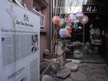 산촌은 뉴욕타임스에도 소개됐던 사찰음식 전문점이다.이 밖에도 100년 넘은 한옥을 개조한 전통음식점 <두레>는 밀양에서 시작해 2대째 내려온 50년 전통 손맛을, 뉴욕 타임즈에 소개된 서울 최초의 사찰음식점 <산촌>은 저녁엔 공연도 즐길 수있다. 창가에서 만두를 빚는 분주한 손길을 직접 볼 수 있는 개성만두집 <궁>은 75년째 이어져 온 또 하나의 장인정신을 엿볼 수 있는 곳이기도 하다. 인사동 거리에는 전통을 이어가는 굵직한 음식점이 많아 좁은 골목마다 찾아가는 재미가 있다. 좋은 음식을 대접받는 분위기가 맛도 한층 돋운다.