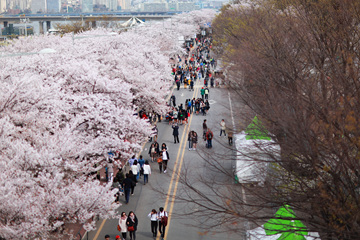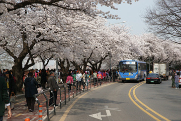 윤중로는 서울 도심에서 가장 많은 벚꽃을 즐길 수 있는 거리다.