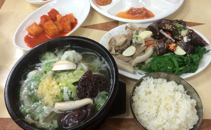 웃장 국밥은 콩나물과 마늘이 들어가 깔끔한 국물과 부드러운 머릿고기가 일품이다.