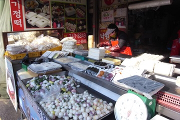 역전 시장에는 떡집이 많다. 아침에 가면 갓 나온 뜨끈한 떡을 맛볼 수 있다.