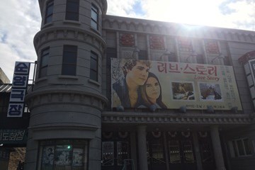 80년대 서울 거리에 옛 극장이 감쪽같이 재현돼있다.드라마촬영장은 순천역에서 멀지 않은 시내에 있어 금방 다시 버스에서 내렸다. 그 주변은 별다를 바 없이 작은 동네 산과 아파트 등이 모여 있는 주거지역인데, 주차장을 지나 커다란 텔레비전 모형의 입구만 지나면 순식간에 시간과 공간이 허물어진다. 먼저 마루가 있는 옛집과 개울을 잇는 나무다리가 인상적인 동네는 1960년대의 순천 읍내를 재현한 것으로 집마다 쌓여있는 장작과 타이어, 차려져 있는 밥상이 금방 주인이 외출한 집처럼 생동감 있다. 조금을 더 걸어가니 드라마 <빛과 그림자>가 촬영된 80년대 서울 거리가 나온다. 완벽한 옛 간판을 건 양화점, 세탁소, 화원, 대포집을 지나서 만나는 커다란 건물은 바로 옛날 극장. 손으로 그린 영화 <러브스토리>의 당시 포스터가 향수를 부른다.