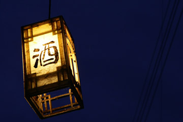 전주 막걸리골목에 등이 환하게 켜져 있다.
