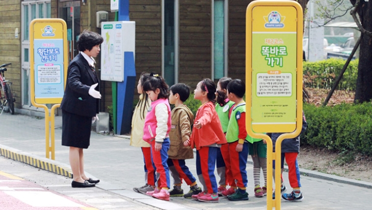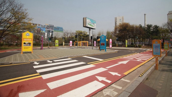 이렇게 이론 교육을 하고 나면 직접 체험도 이루어져야 하는 법. 바로 신호등과 횡단보도, 까만색 아스팔트까지, 도로와 똑같이 꾸며진 실외교육장에서 배웠던 것을 바로 실습해본다. 안실련 소속인 안전 전문 강사가 이 모든 과정에서 질문을 던지며 아이들이 교통수칙을 잊지 않도록 안내한다. 이 실외교육장은 어린이 자전거 교육도 함께 겸하고 있다.